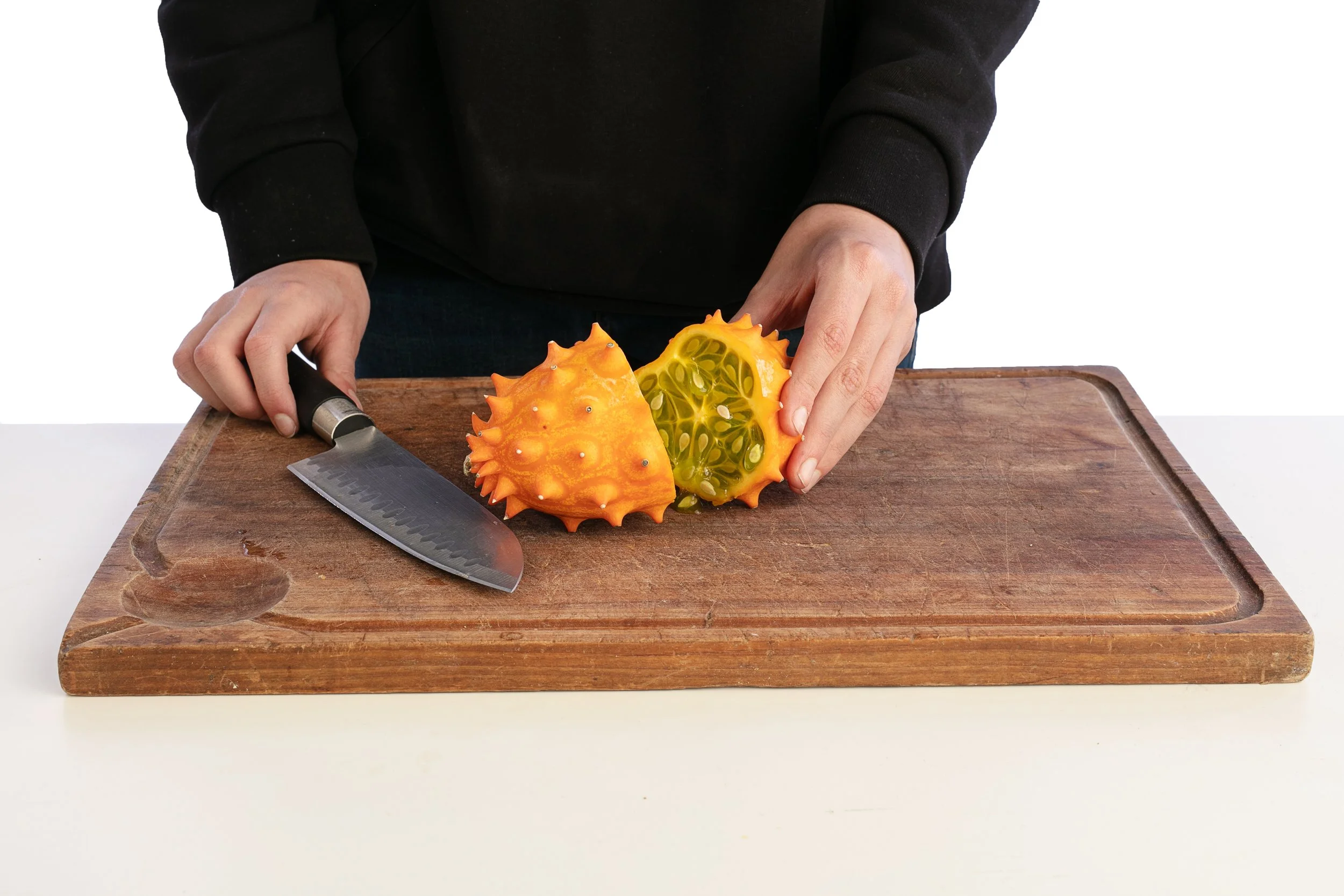 火參果的外形引人注目,其楕圓的硬殼表面布滿了顆粒狀的突起,酷似海參的外觀。這種獨特的外形讓人印象深刻。成熟時,它的皮會由青綠色轉變為金黃,容易讓人聯想到菠蘿或麒麟果。不過,它比一般的菠蘿小,比麒麟果略大,切開後露出的是綠色凝膠狀的果肉,細膩多籽,風味清甜爽口。